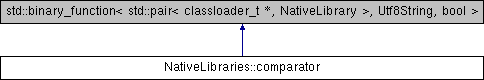 | bool | operator() (std::pair< classloader_t *, NativeLibrary > args, Utf8String filename) const |